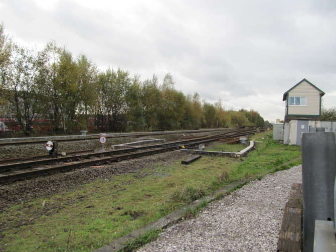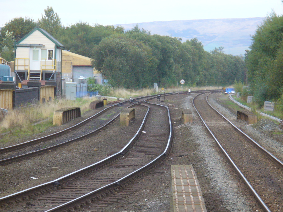 Rochdale signal box and the entrance to the "Bacup Bay" now used for Oldham services. Copyright Chris Bruce 2017