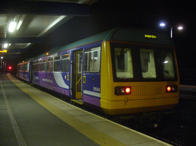 142003 with the last Sunday service departure from Rochdale to Manchester Victoria via Oldham. Copyright Chris Bruce 2017