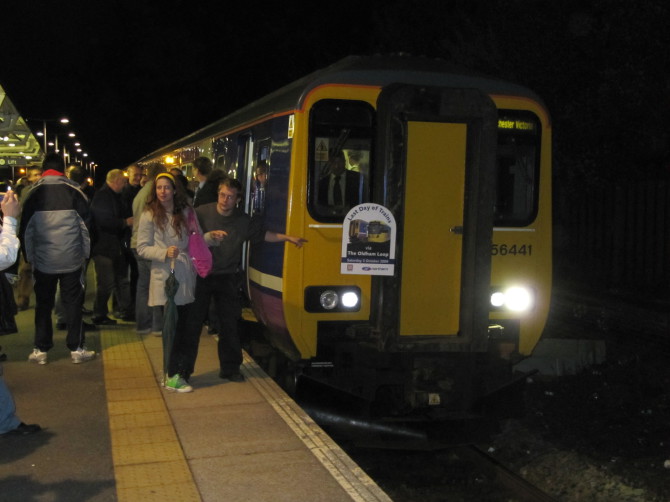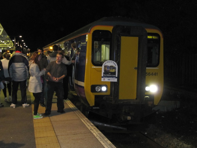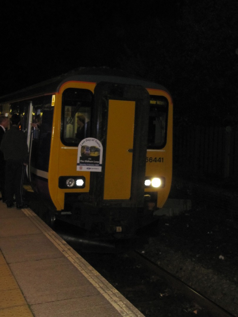 The last Oldham Loop train awaits its return run to Manchester Victoria. by now 04/10/2009. Copyright Chris Bruce 2017