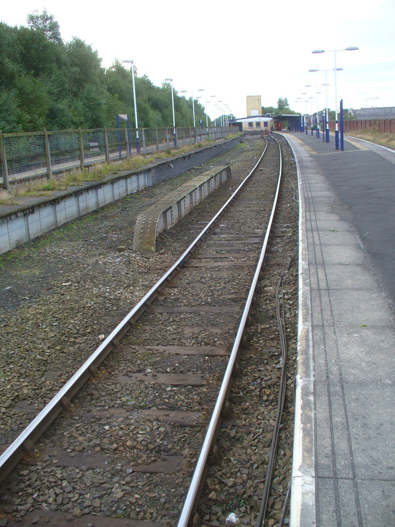 Looking back along the Bacup platform. The former Oldham platform is out of use on the other side. Copyright Chris Bruce 2017