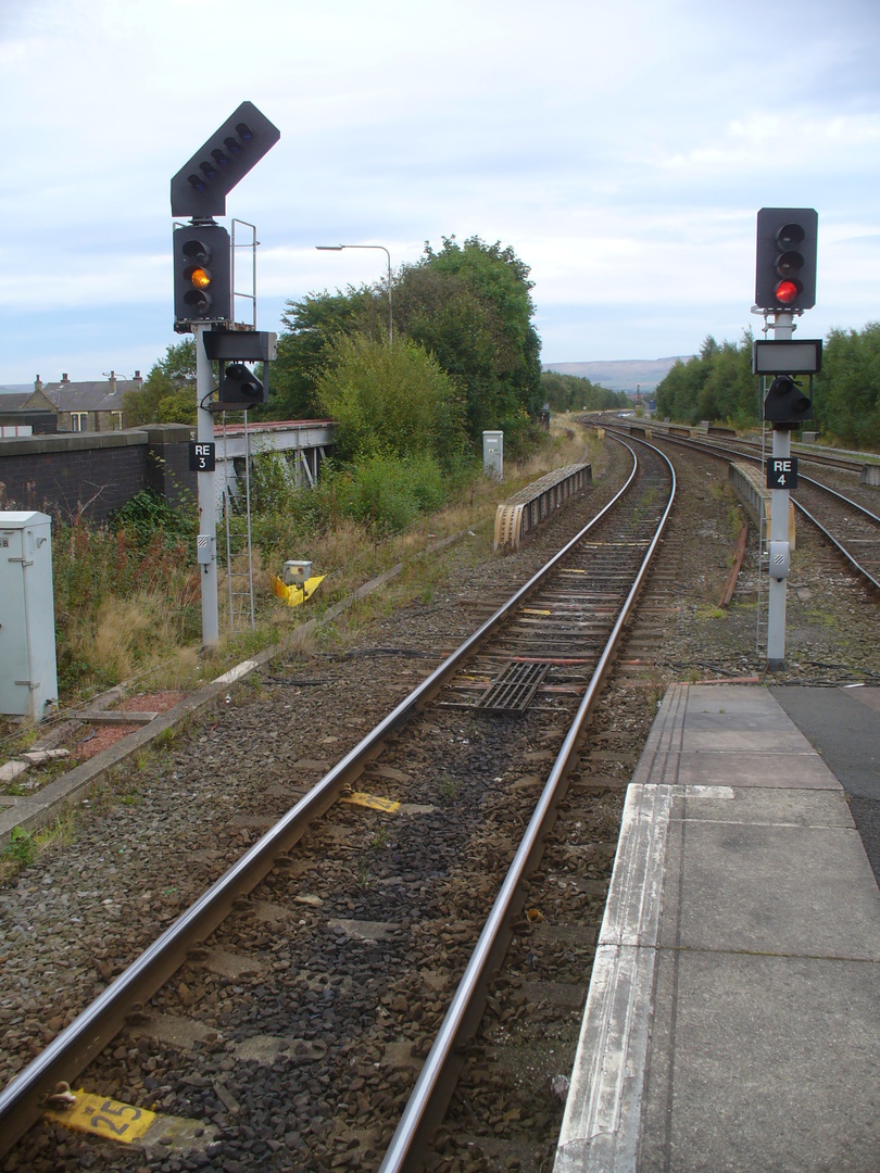 The starter signals. RE3 would loose its feather for the Oldham Loop. RE4 is effectively redundant. Copyright Chris Bruce 2017