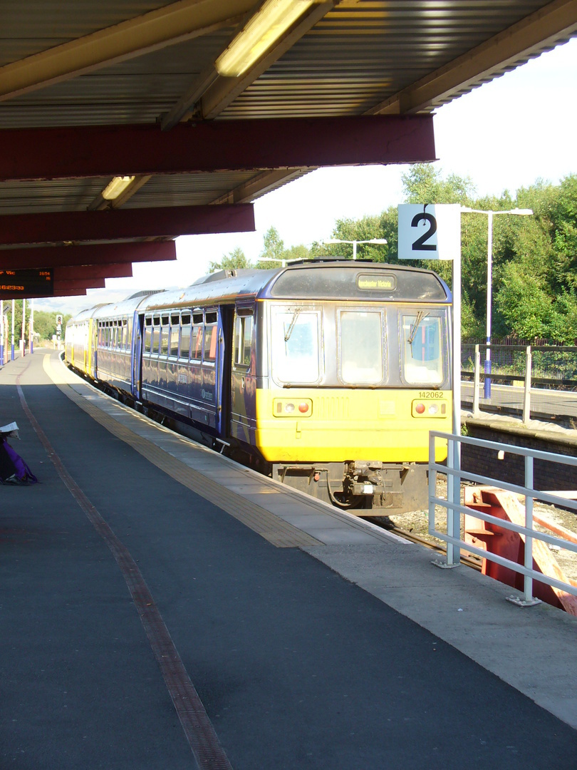 142052 & 142062 waiting to depart for Oldham and Manchester Victoria. Copyright Chris Bruce 2017