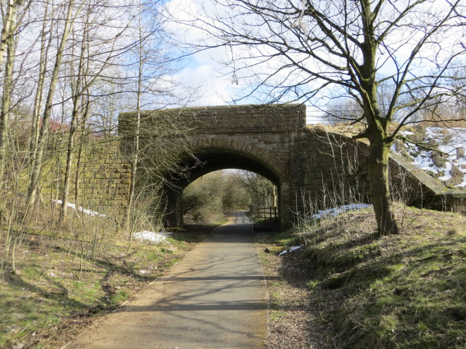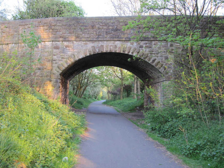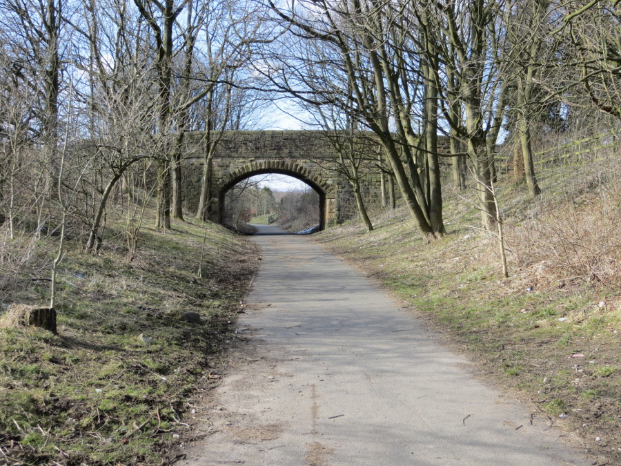 The Royton Branch is now a footpath. The path leaves teh branch where the retaining wall for the gas works incline starts. Copyright and all rights reserved Chris Bruce 2017.