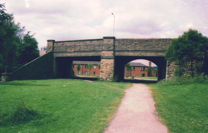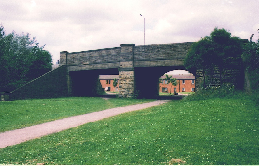 The second bridge on the Royton branch was for farm access across the line. The bridge is situated after the gas works. The farm used to be on the right until the late 1980's and Salmon Fields on