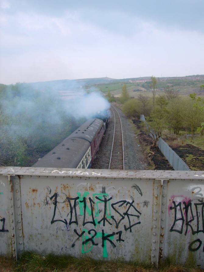 40145 heads towards Bullcote Lane from Royton Junction, with a railtour. Copyright Chris Bruce. All rights reserved.