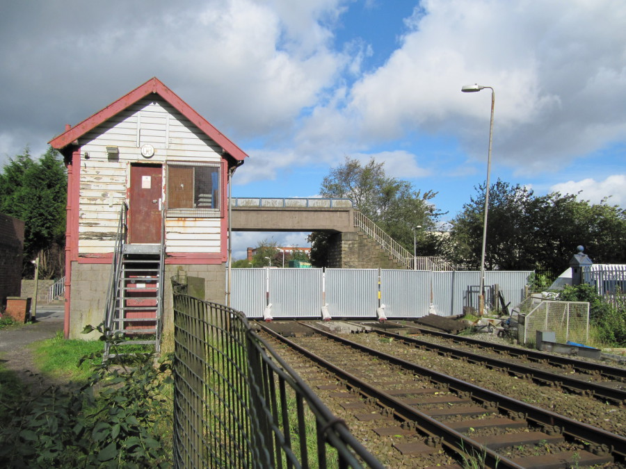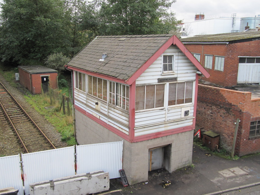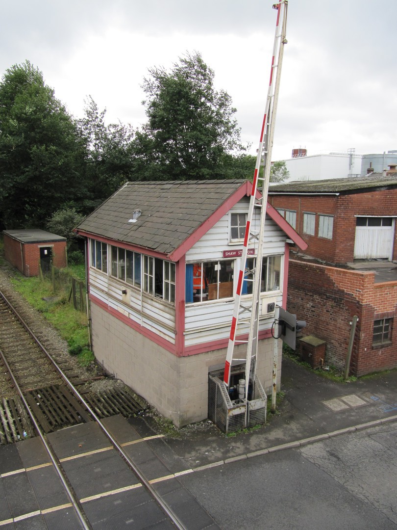 Shaw Station signal box seen from teh footbridge.  © Copyright Chris Bruce 2017