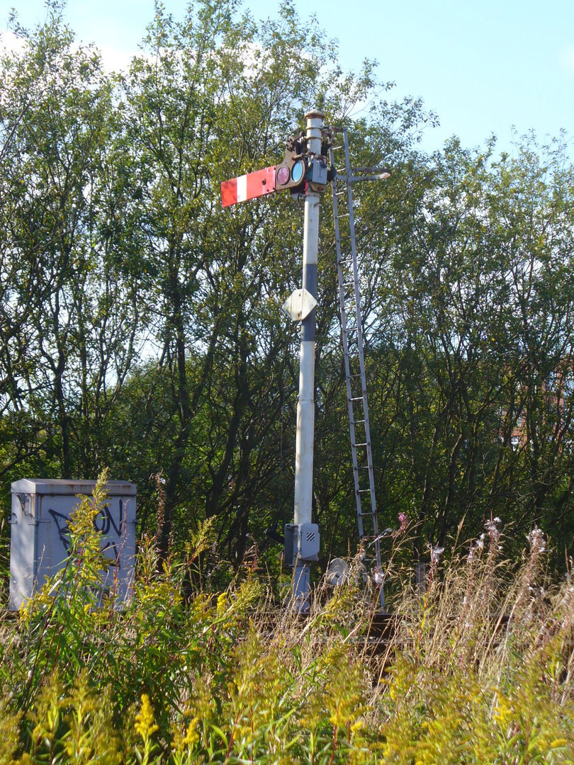 The outer signal protecting the level cossing on the approach to Shaw & Crompton from Royton Junction.  © Copyright Chris Bruce 2017