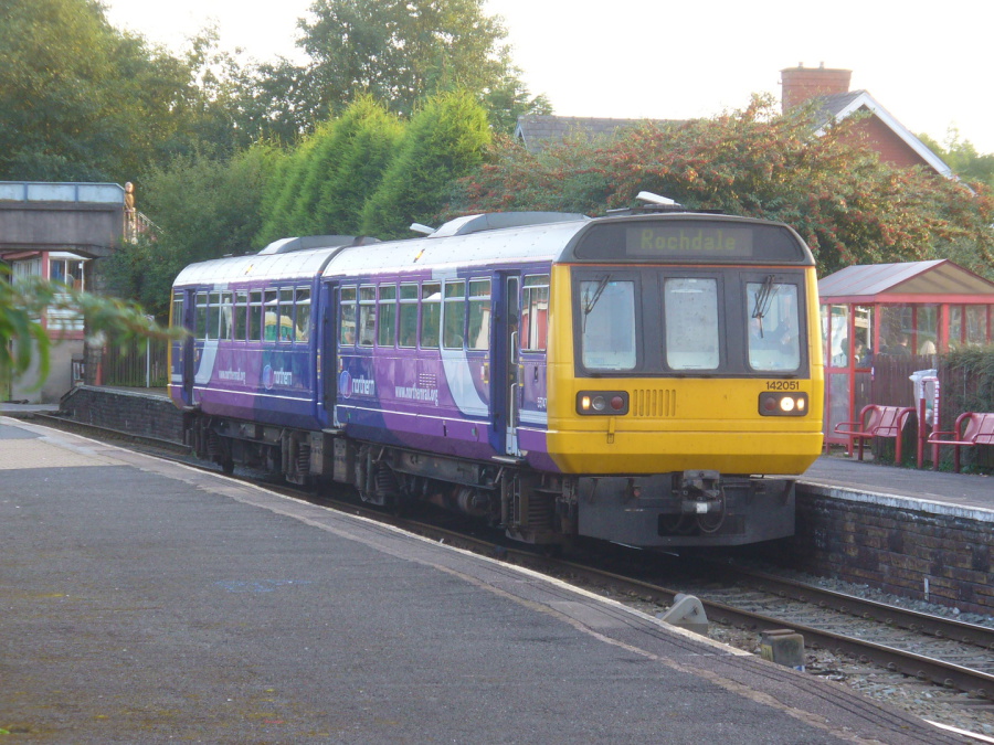 142009 deposits passenger before heading to Rochdale.  © Copyright Chris Bruce 2017