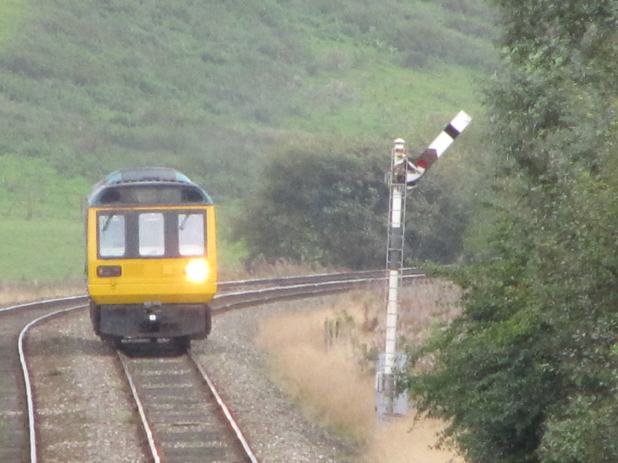 The peg goes "off" as 142041 slowly approaches Shaw & Crompton.  © Copyright Chris Bruce 2017